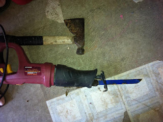 That's right folks! You guessed it!! A Sawzall and and Axe. My 6 & 2 year old and 3 of the 6 yr old's friends were chopping and sawzalling. (<----probably not really a verb but that's the word I'm going with today). I went running out there like a crazy person, I'm sure my eyes were crossed, my hair was standing, my claws were out and my head was smoking!! I started yelling and they all got quiet and just looked at me and said "look at the cool thing we are building
